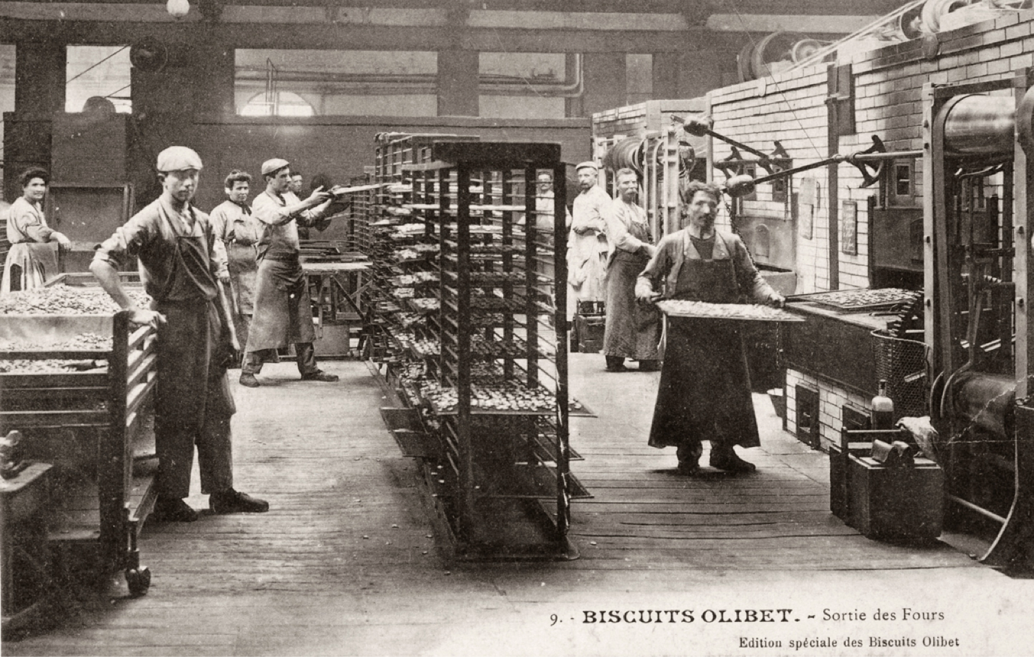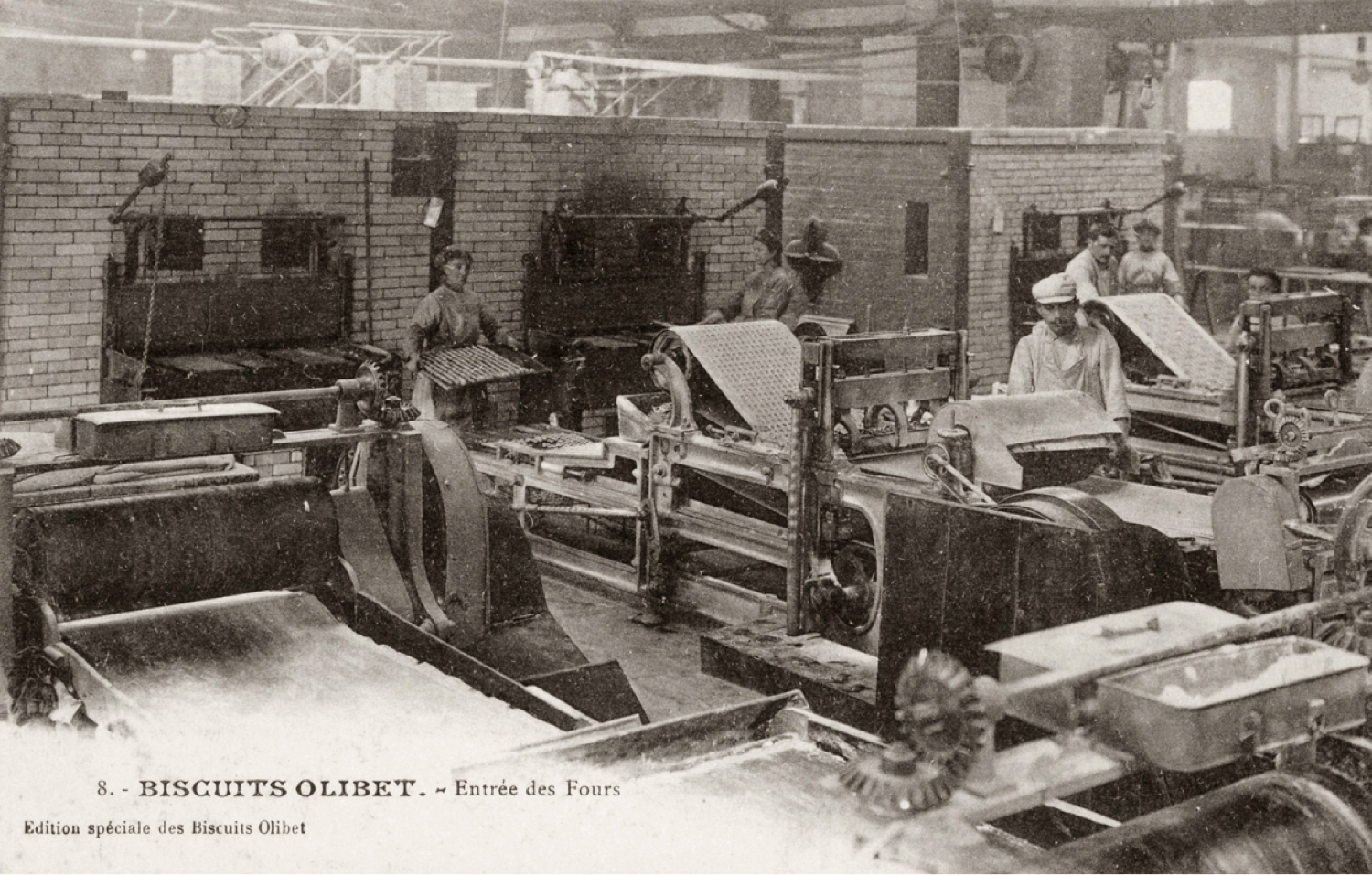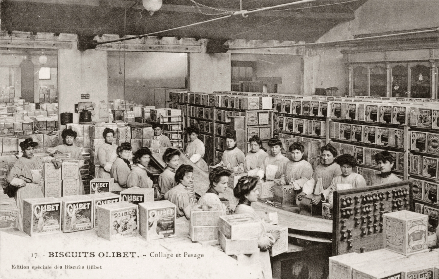 Si l’on peut raisonablement se poser des questions sur l’industrie agro-alimentaire telle qu’elle existe aujourd’hui (…), la révolution du XIXe siècle a néanmoins permis des avancées incontestables, qui ont permis la diffusion à grande échelle des produits de consommation sains. L’arrivée de nouvelles machines et la décomposition du processus de fabrication en une suite de tâches spécialisées a permis une diminution drastique des coûts, et ce en respectant des normes de qualités associées à une marque. On notera néanmoins sur ces clichés le séquençage stricte, le caractère répétitif et la séparation des hommes et des femmes dans la suite du processus.