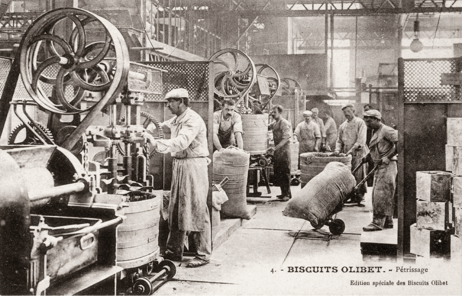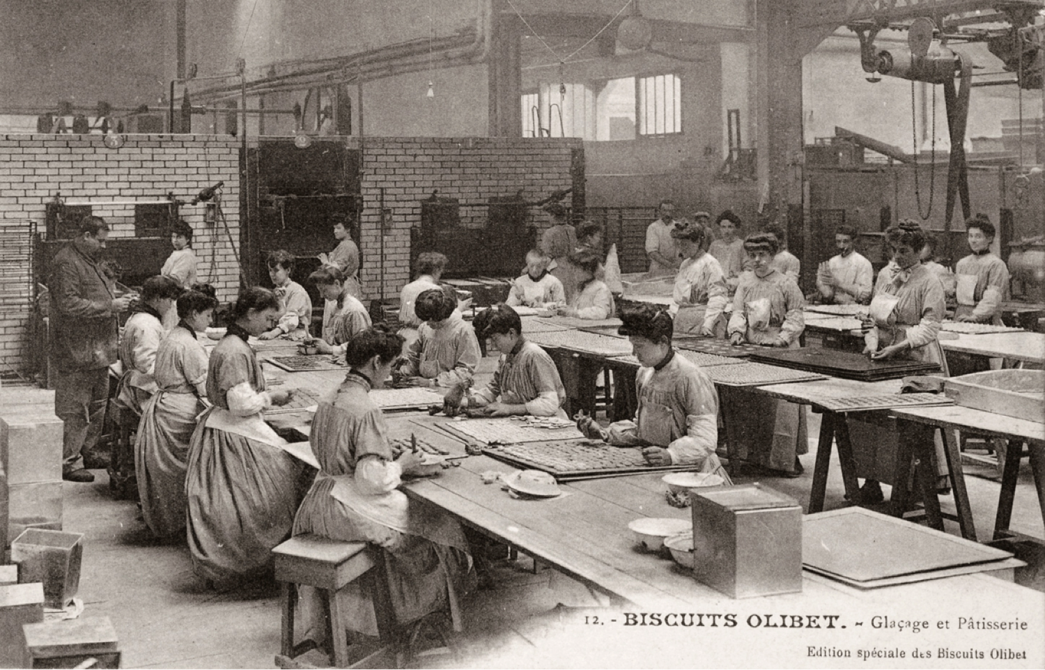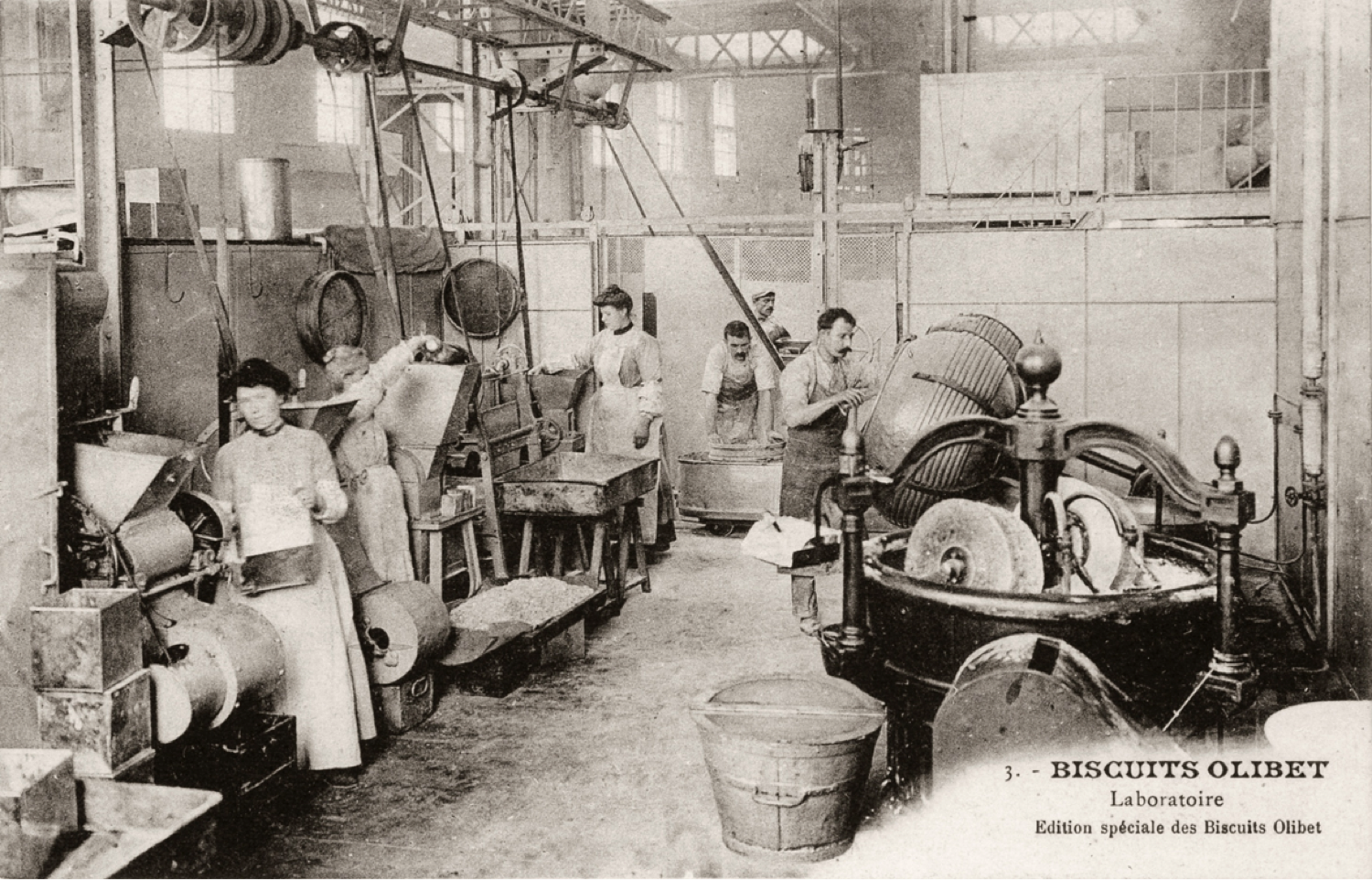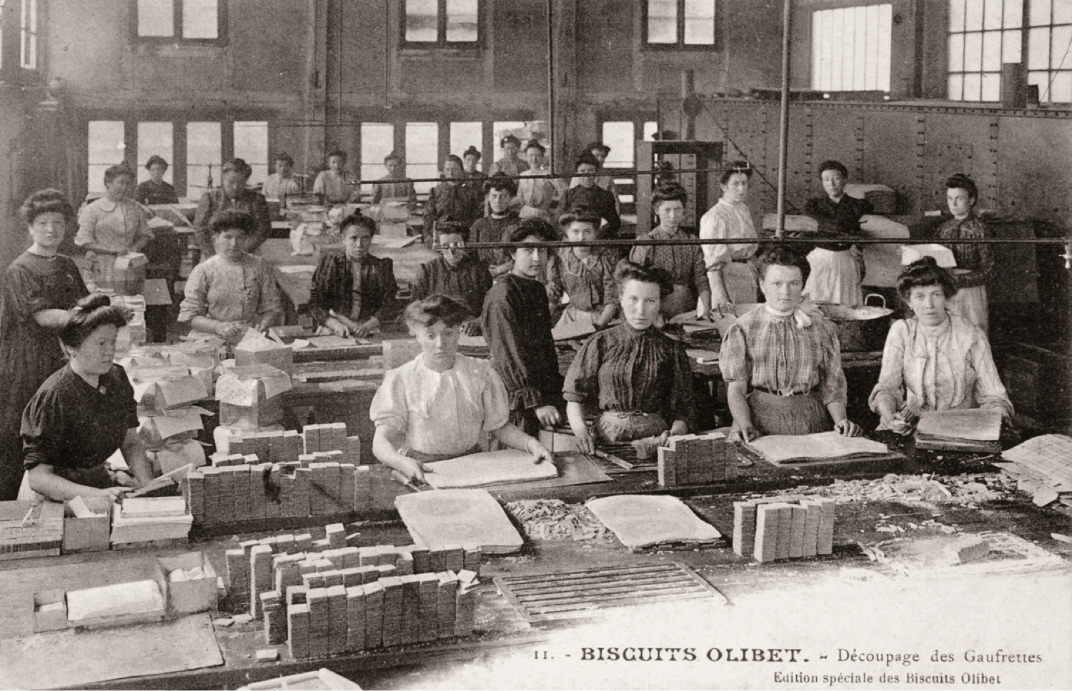 Si l’on peut raisonablement se poser des questions sur l’industrie agro-alimentaire telle qu’elle existe aujourd’hui (…), la révolution du XIXe siècle a néanmoins permis des avancées incontestables, qui ont permis la diffusion à grande échelle des produits de consommation sains. L’arrivée de nouvelles machines et la décomposition du processus de fabrication en une suite de tâches spécialisées a permis une diminution drastique des coûts, et ce en respectant des normes de qualités associées à une marque. On notera néanmoins sur ces clichés le séquençage stricte, le caractère répétitif et la séparation des hommes et des femmes dans la suite du processus.